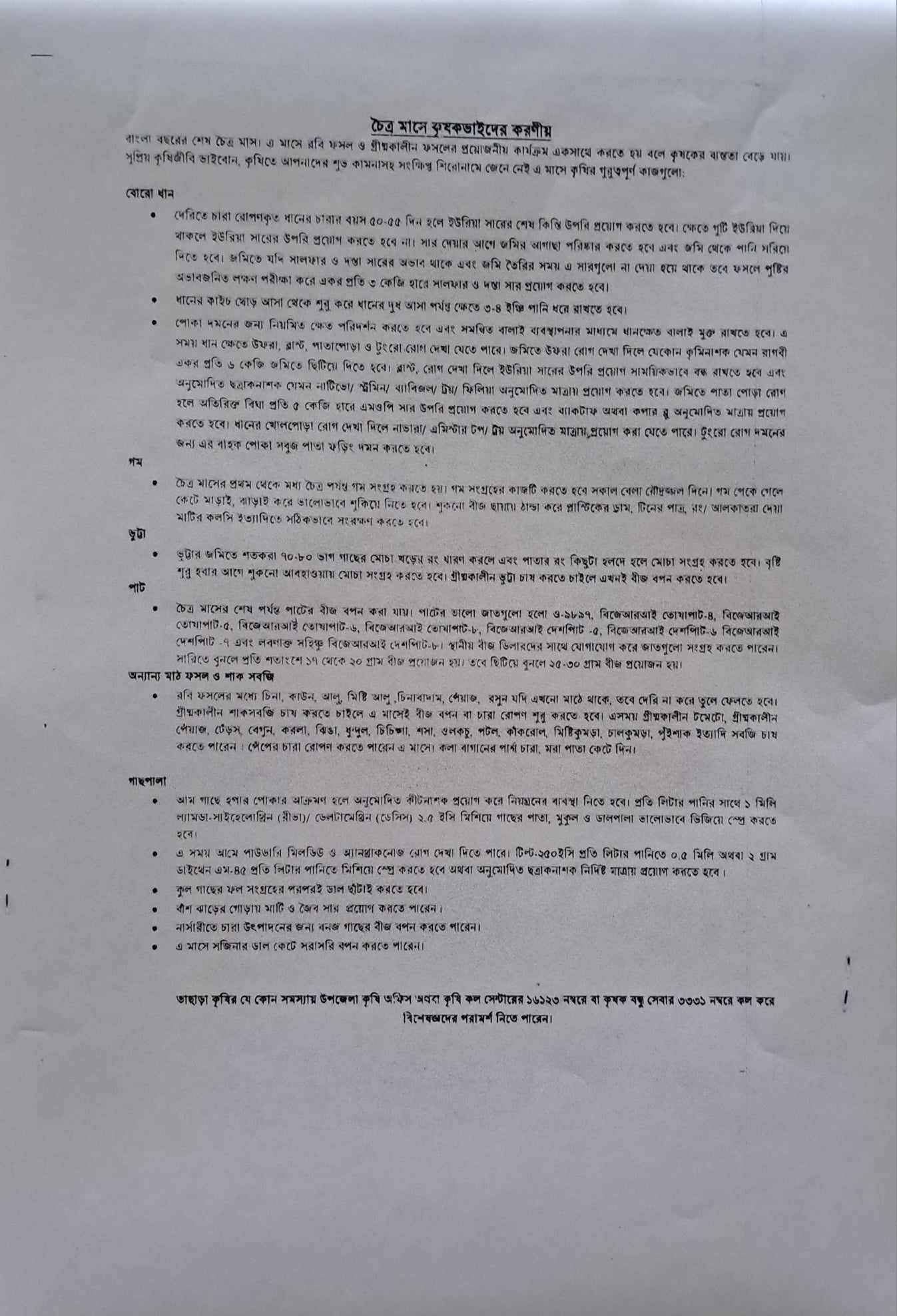 | ২ | চৈত্র মাসে কৃষক ভাইদের করণীয় | | ১৩-০৩-২০২৪ | দেখুন | |